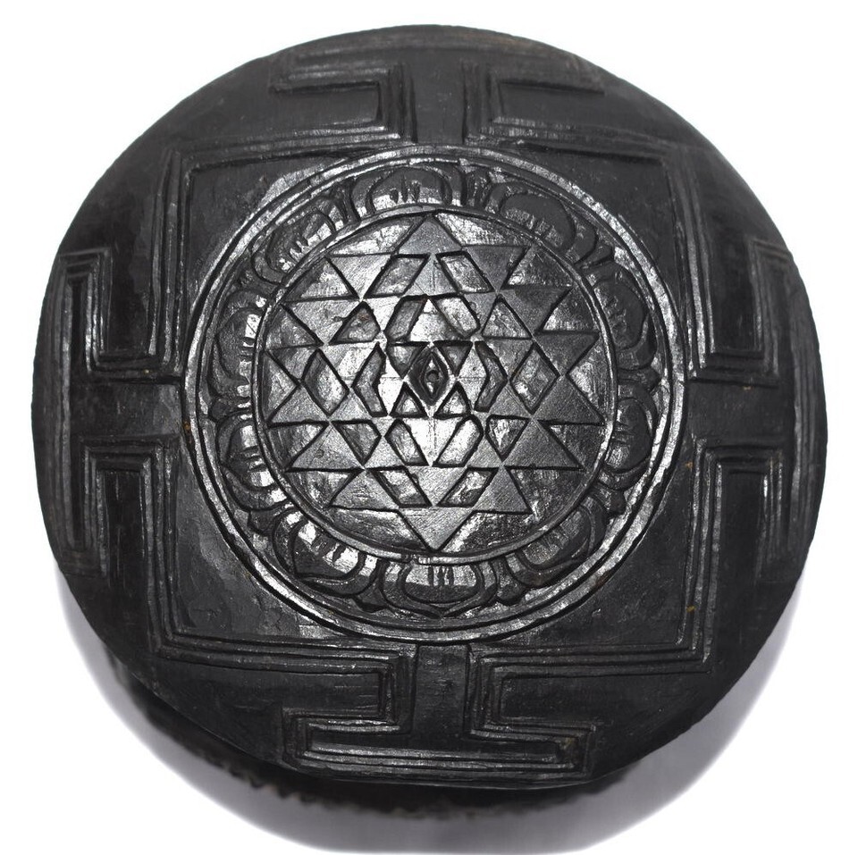 Product Name : Rare Shree Yantra on Natural Shri Chakra Sudarshan Shaligram Origin : Gandaki river Nepal Weight : 1241 gms Dimension : 5 inches * 5 inches Design : Beautiful Perfect Shree yantra in Made on Natural Shri chakra Sudarshan Shaligram .