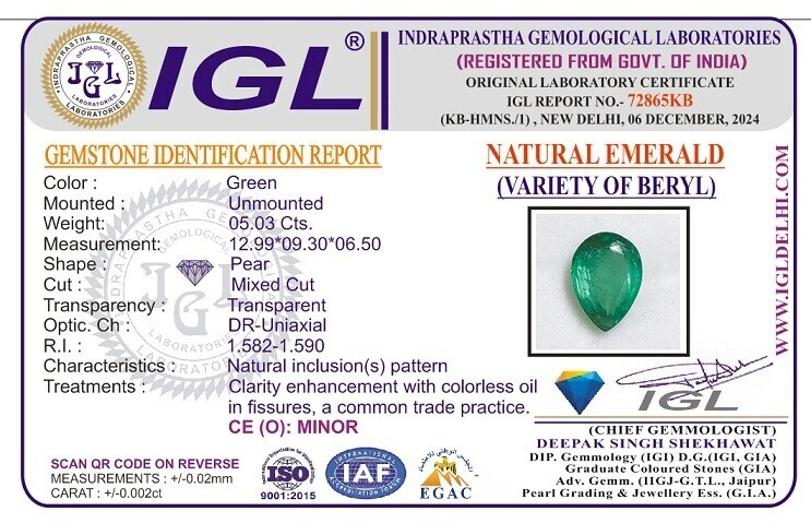 Wearing Emerald Gemstone nullifies the negative influence of planet Mercury blessing the person self-confidence and respect from others.