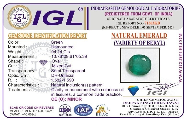 Natural Emerald / Panna - Zambian Mines - 4.14 carats - Lab Certified