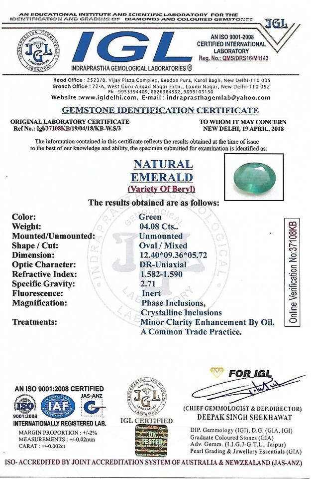 Emerald / Panna - 4.08 Carats - Zambian - IGL Certified