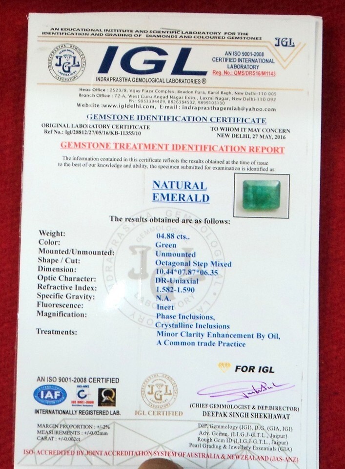 Emerald / Panna - 4.88 carat - Zambian Mines - IGL Certified