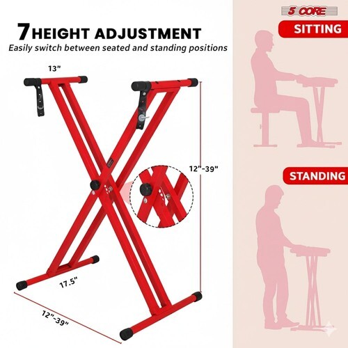 [Adjustable Keyboard Stand for All Players]Easily adjust the height from 12" to 39" to find your perfect playing position whether sitting or standing. This adjustable keyboard stand works well for both kids and adults, offering comfort and flexibility for long practice sessions or performances