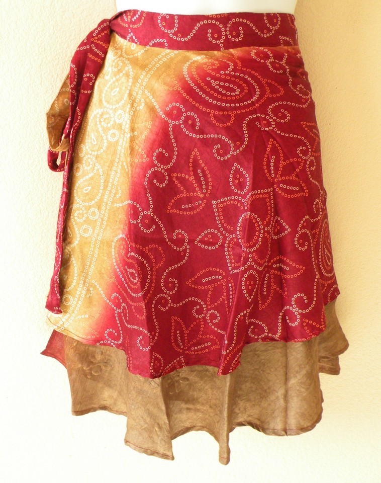 Double Layer Vintage Silk Magic Wrap Around Skirt