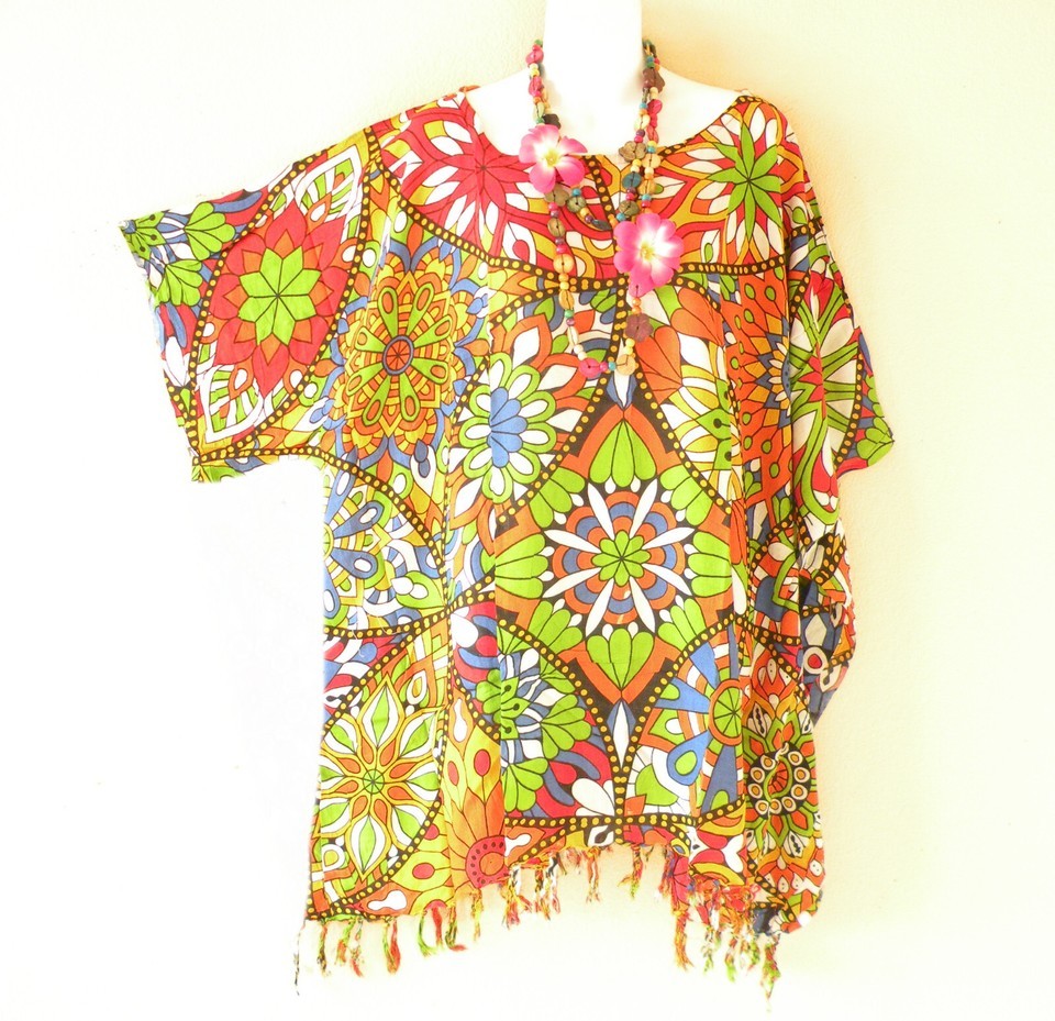 KB124 Abstract Batik Plus Tunic Kimono Poncho Hippy Women Blouse Top up to 1X