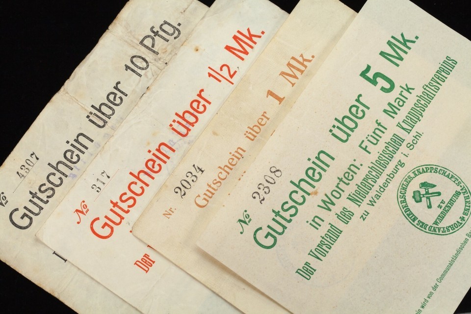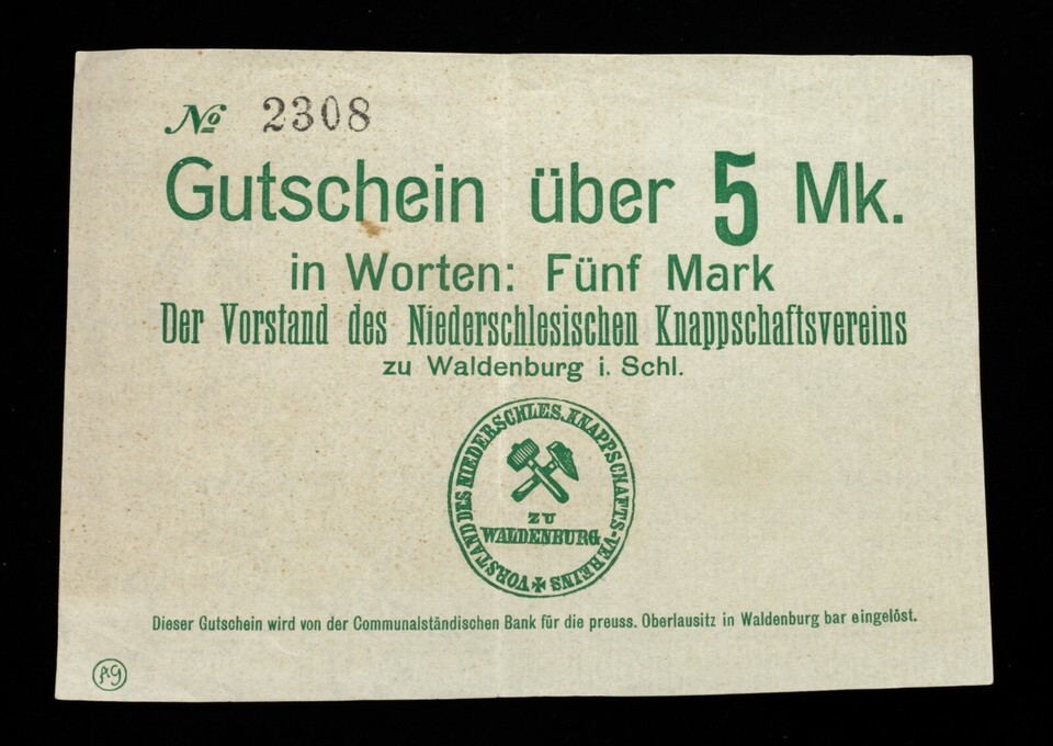 Notes (3) backed by Niederschlesischen Knappschaftsvereins at Waldenburg Castle