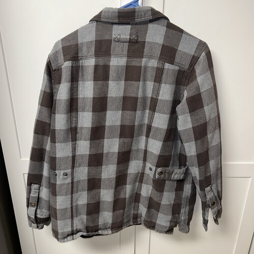 Duluth Trading Mens Medium Flapjack Flannel Plaid Quilted Heavy Shirt Jacket