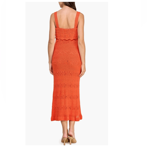 KOKO + MASON Popover Ruffle Pointelle Sweater Dress, Size Small, Orange, NWT