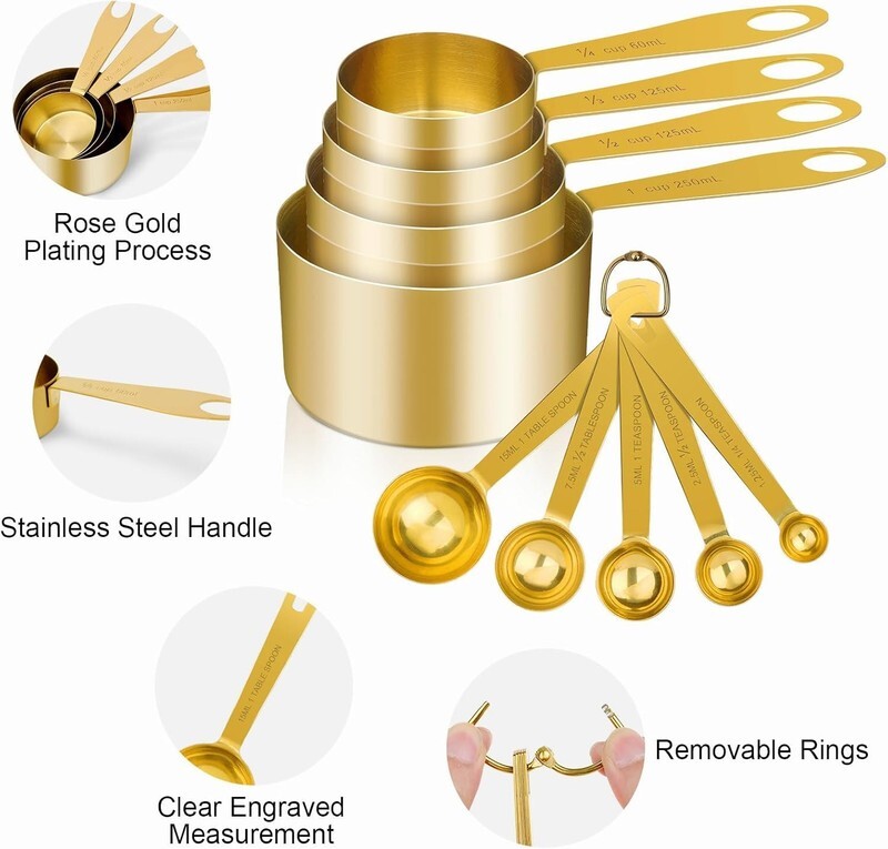 Each cup and spoon features clearly engraved US and metric measurements that won?t fade or wash off, ensuring accurate results and eliminating guesswork while cooking or baking.