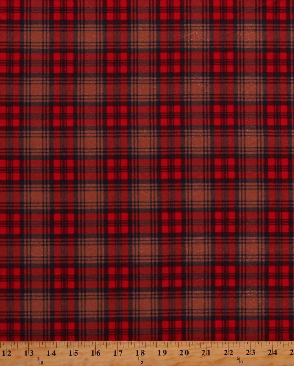 Flannel Plaid Rust Red Tan Dad Plaids Whistler Studios Cotton Flannel Fabric Print by the Yard (51871F-14)