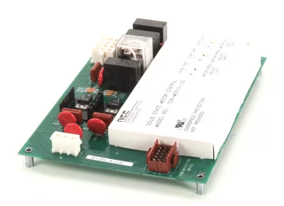 The Cleveland TCR-MC510-120 / 9732 Solid State Control Board is an OEM motor control board designed for electric NCC systems. This solid-state board regulates motor operation with precision and reliability, helping ensure smooth, consistent performance in commercial foodservice equipment. Manufactured to original specifications, it is the correct replacement to restore proper electronic control and system functionality.