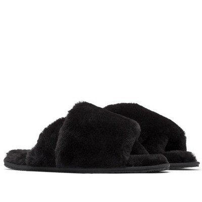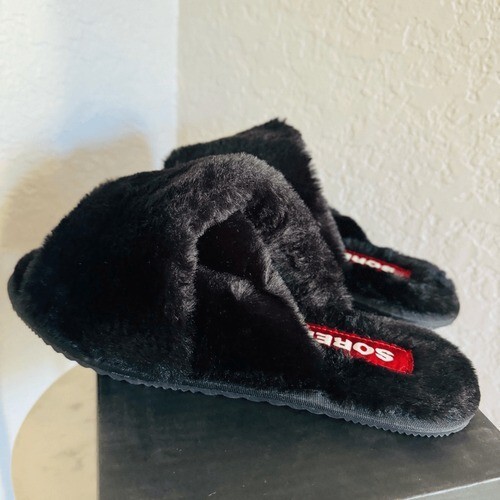 Sorel Go Mail Run Faux Fur Cotton Slippers, Cozy House Shoes, Black, Size 9, NWT