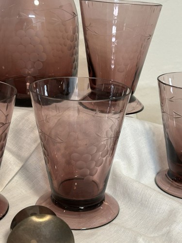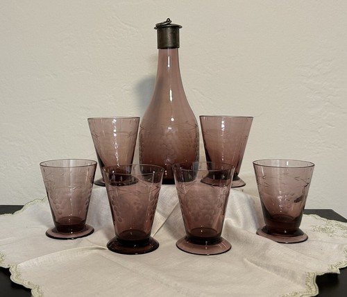 Vtg Purple Etched Wine Decanter w/ 6 and 46 similar items