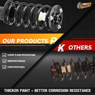 [Compatible Models] These Front+Rear Struts Fit for Chevrolet Equinox 2007-2009, for Pontiac Torrent 2007-2009, for Saturn Vue 2008-2010. Please note that the selection is based on your own car model. [Includes]4 Pcs (2 Pair) of Front+Rear Complete Struts Assembly which Equiped with Strut, Coil, Spring and Mounts. Replace Complete Strut Assembly: 172527 172526 345055 911258. [Improved Safety] The Shocks are designed to improve your car's safety by providing increased stability and control on the road. They provide a smooth and comfortable ride while enhancing your car's handling and control on the road. [Durable Construction] Constructed with high-quality materials to deliver long-lasting durability and reliability. Their strong build ensures that they withstand the toughest driving conditions and last for many miles to come. [Easy Installation] These Shocks are easy to install and require no special tools or skills. The installation process quick and straightforward.
