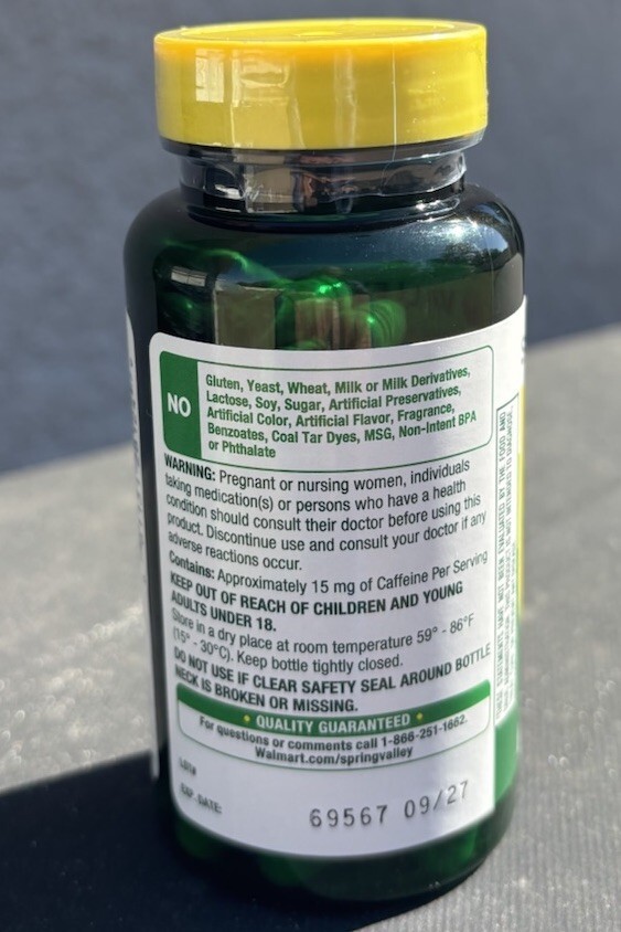 Spring Valley Green Tea Extract Vegetarian Capsules, 500 mg, 60 Count.
