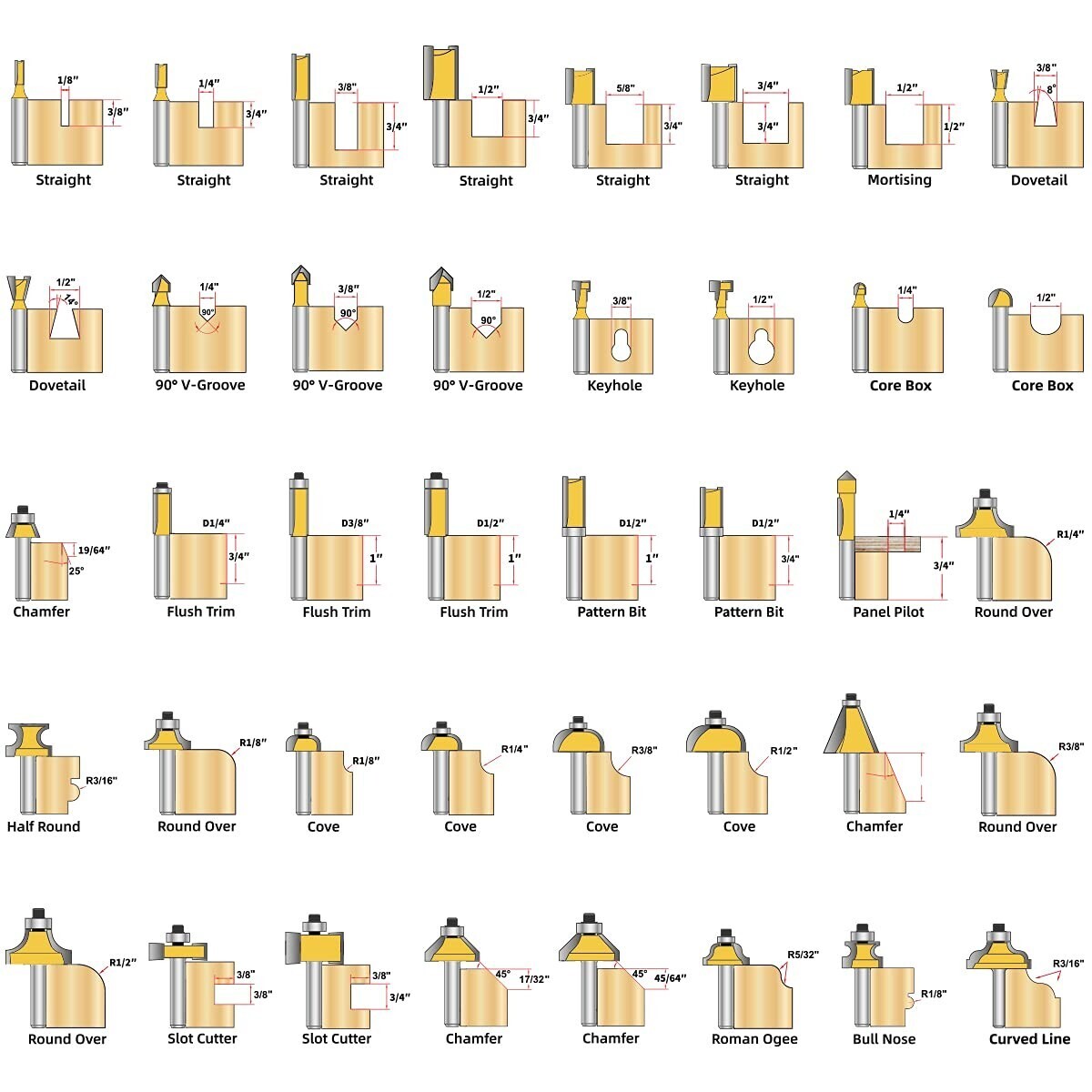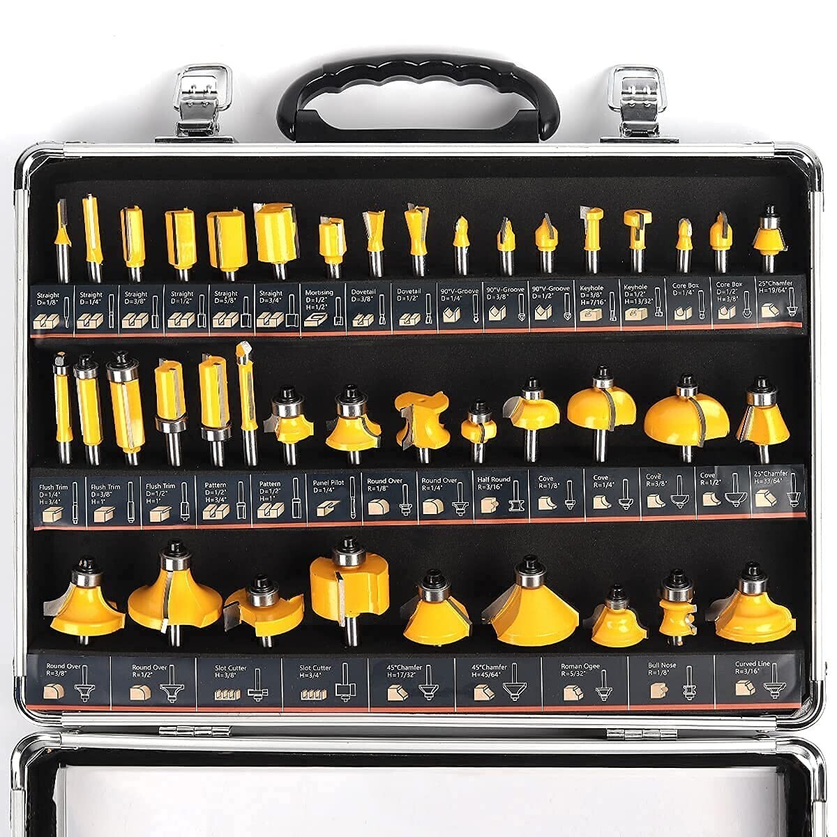 Router Bits Set of 40 Pieces, 1/4 Inch Shank, 40A Expert Router Bit Kit.