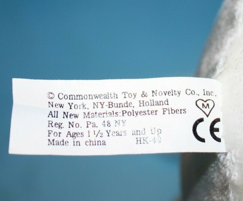 Features: Pretty Blue and White Plush Material, Plastic eyes, Pink plush nose, wearing bow tie and holds an attached security blanket, bunny rabbit slipper feet made into body - non-removable.