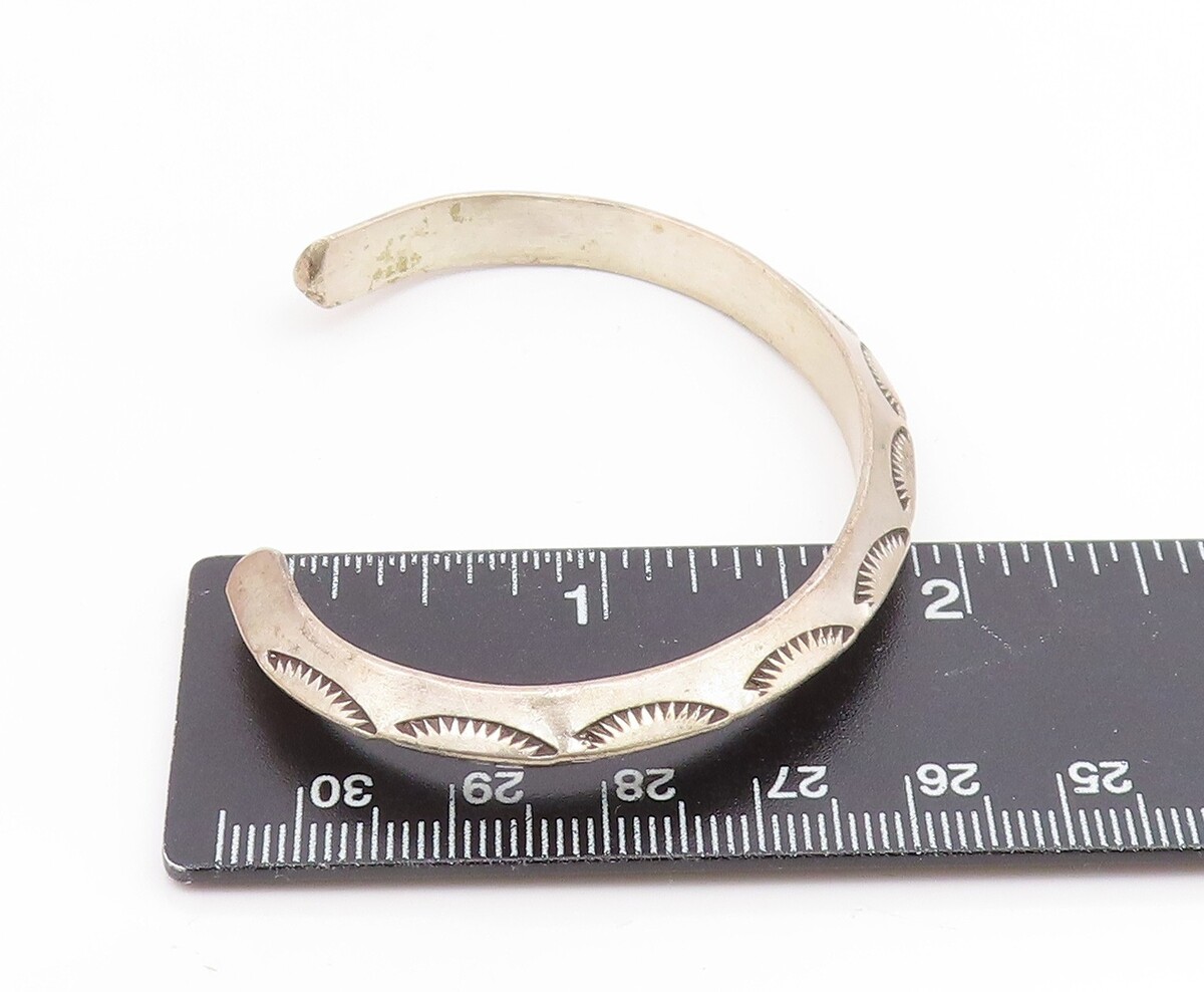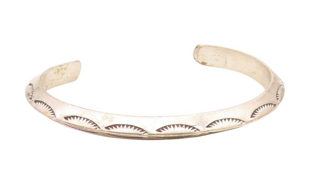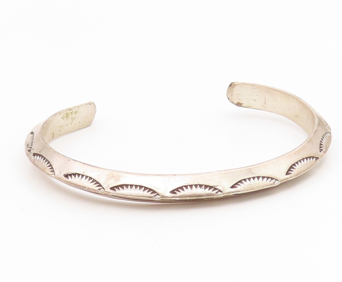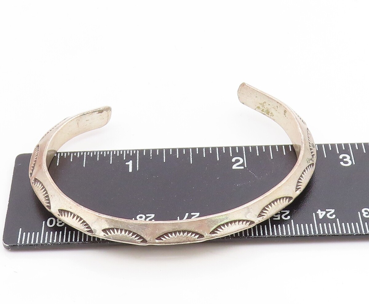 925 Sterling Silver Vintage Bracelet NAVAJO Etched Sunrise Wave Cuff BT11911