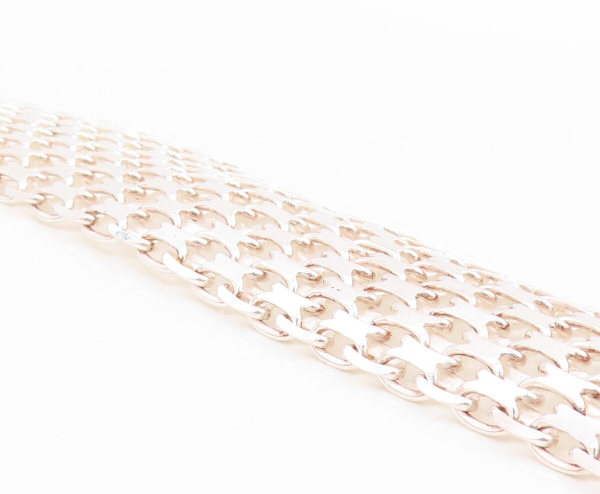 925 Sterling Silver Vintage Bracelet Intricate Geometric Pattern Link BT11924