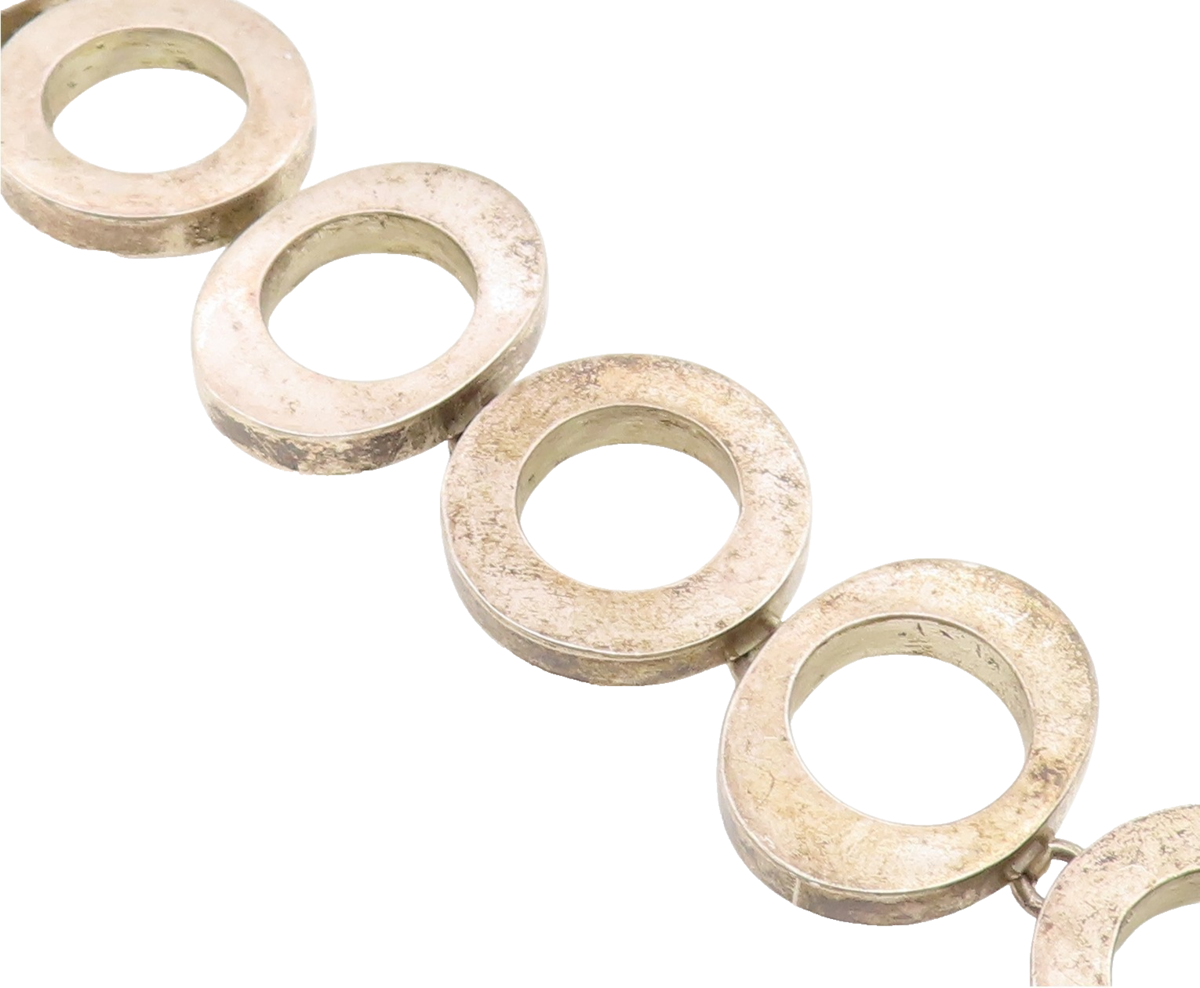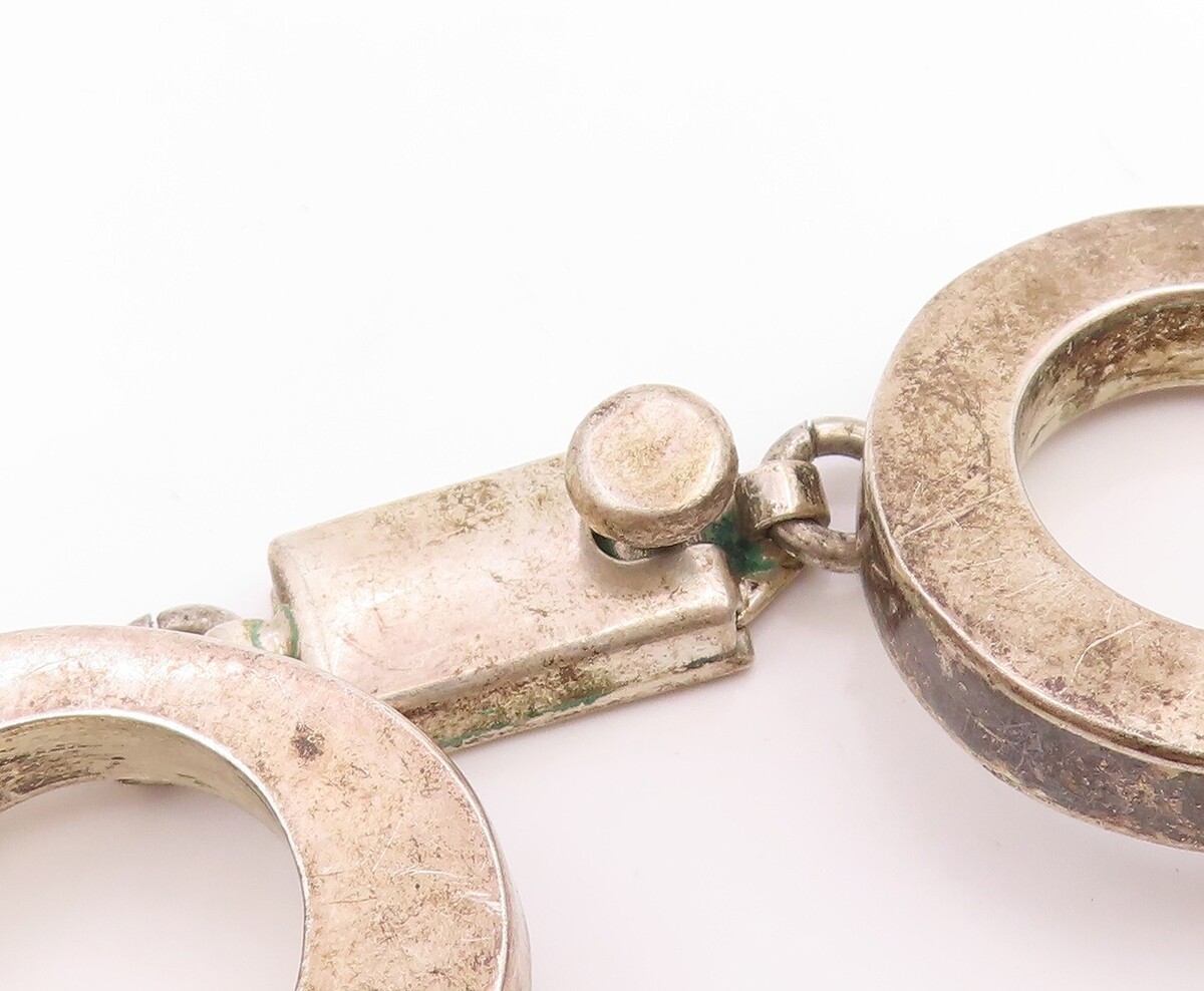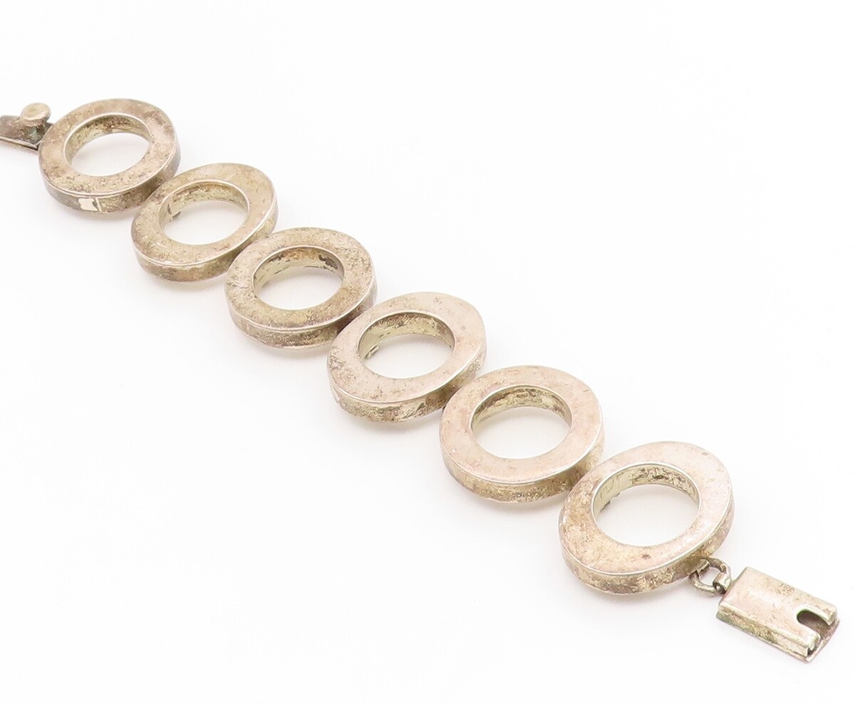 925 Sterling Silver Vintage Bracelet MEXICO Chunky Geometric Circle Link BT11920