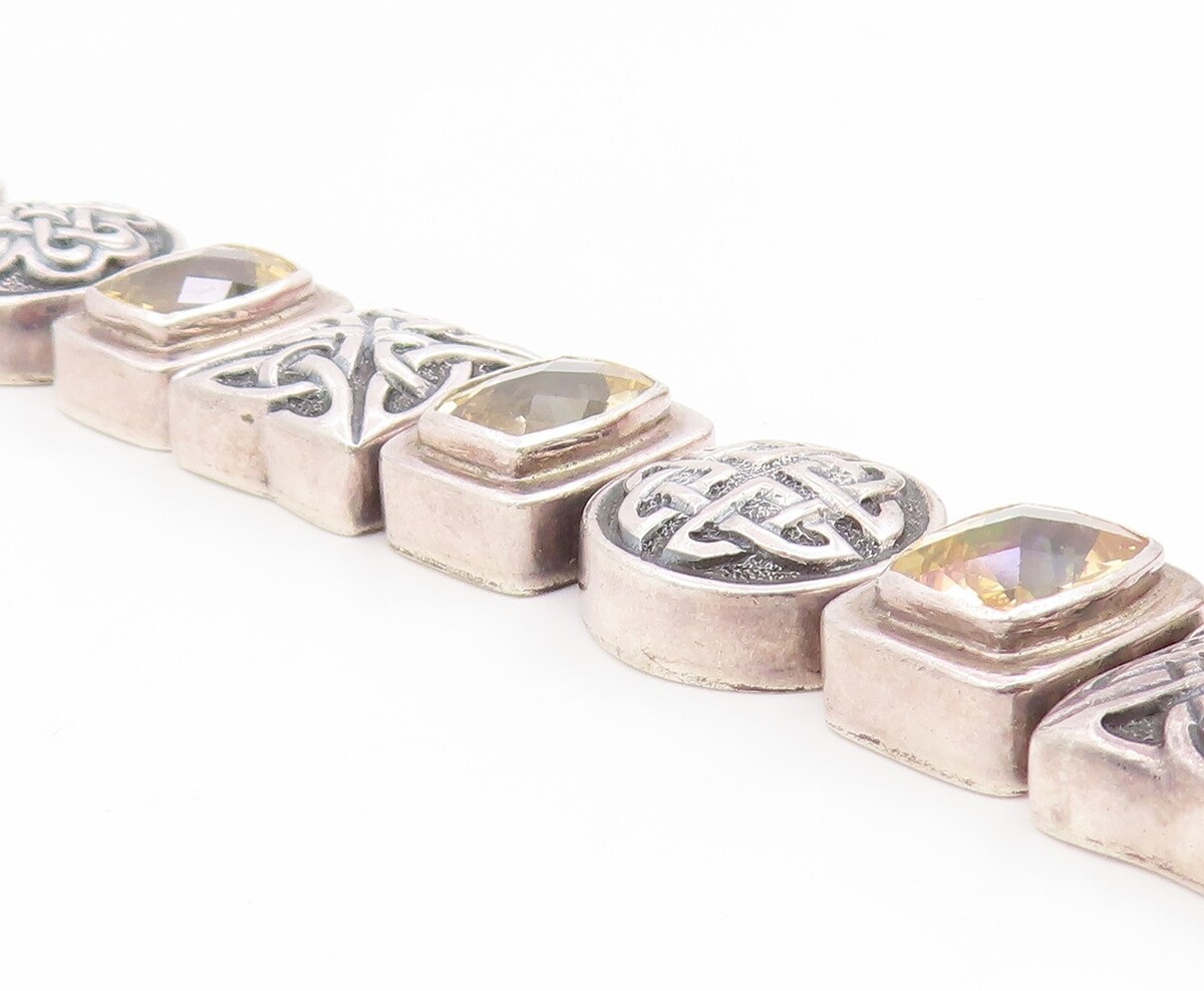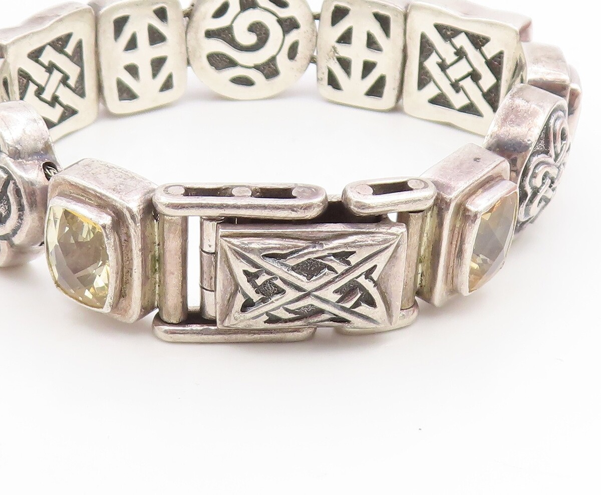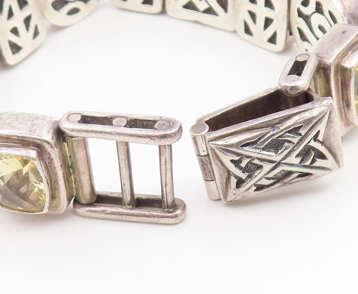 925 Sterling Silver Vintage Bracelet DEBORAH ARMSTRONG Citrine Chain BT11935