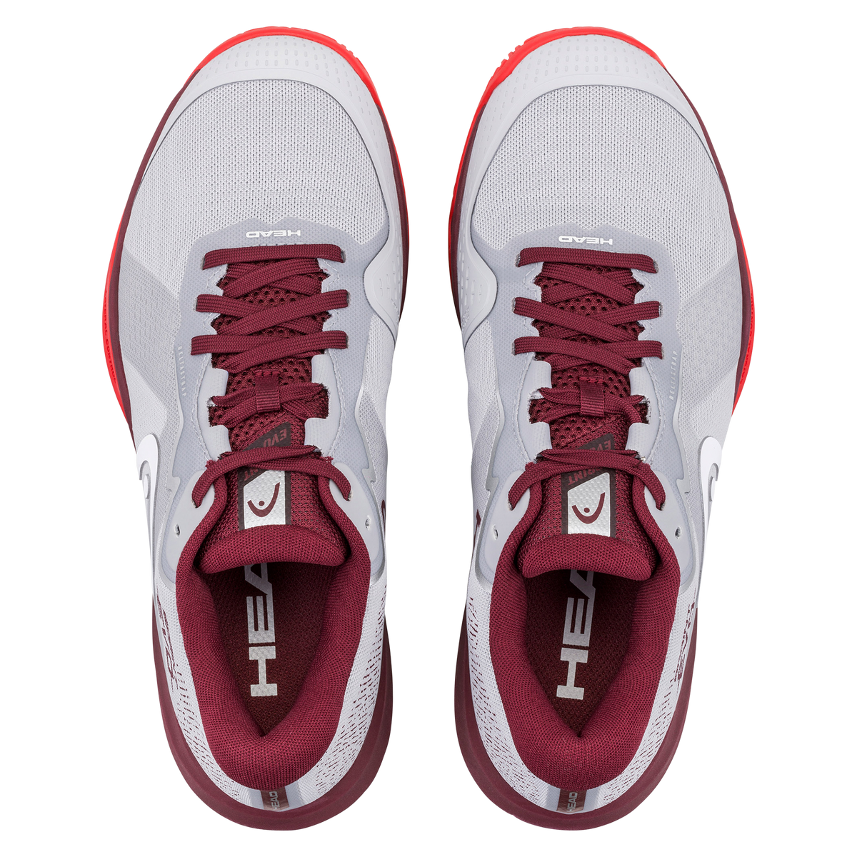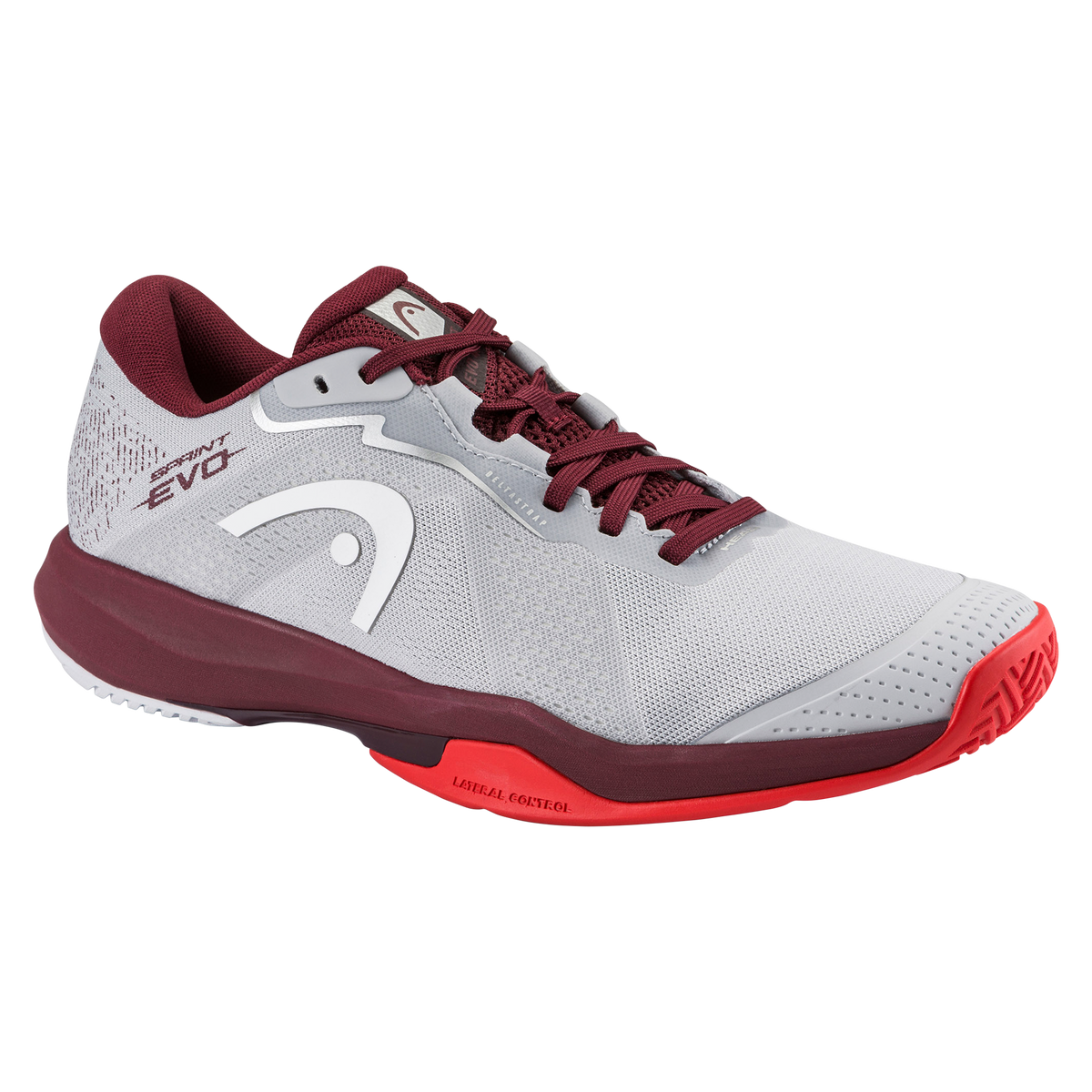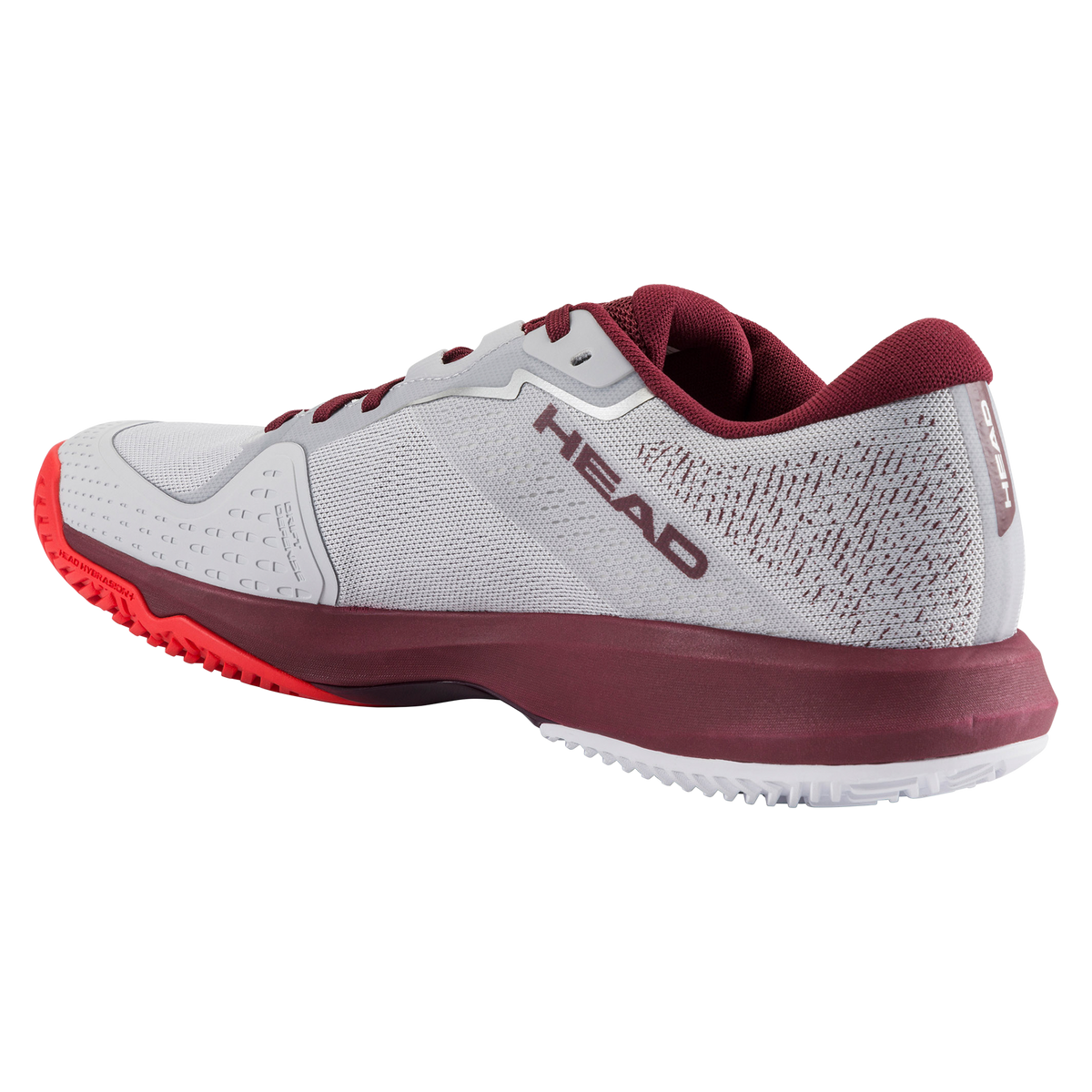 light grey red mens tennis shoes, head sprint evo clay footwear