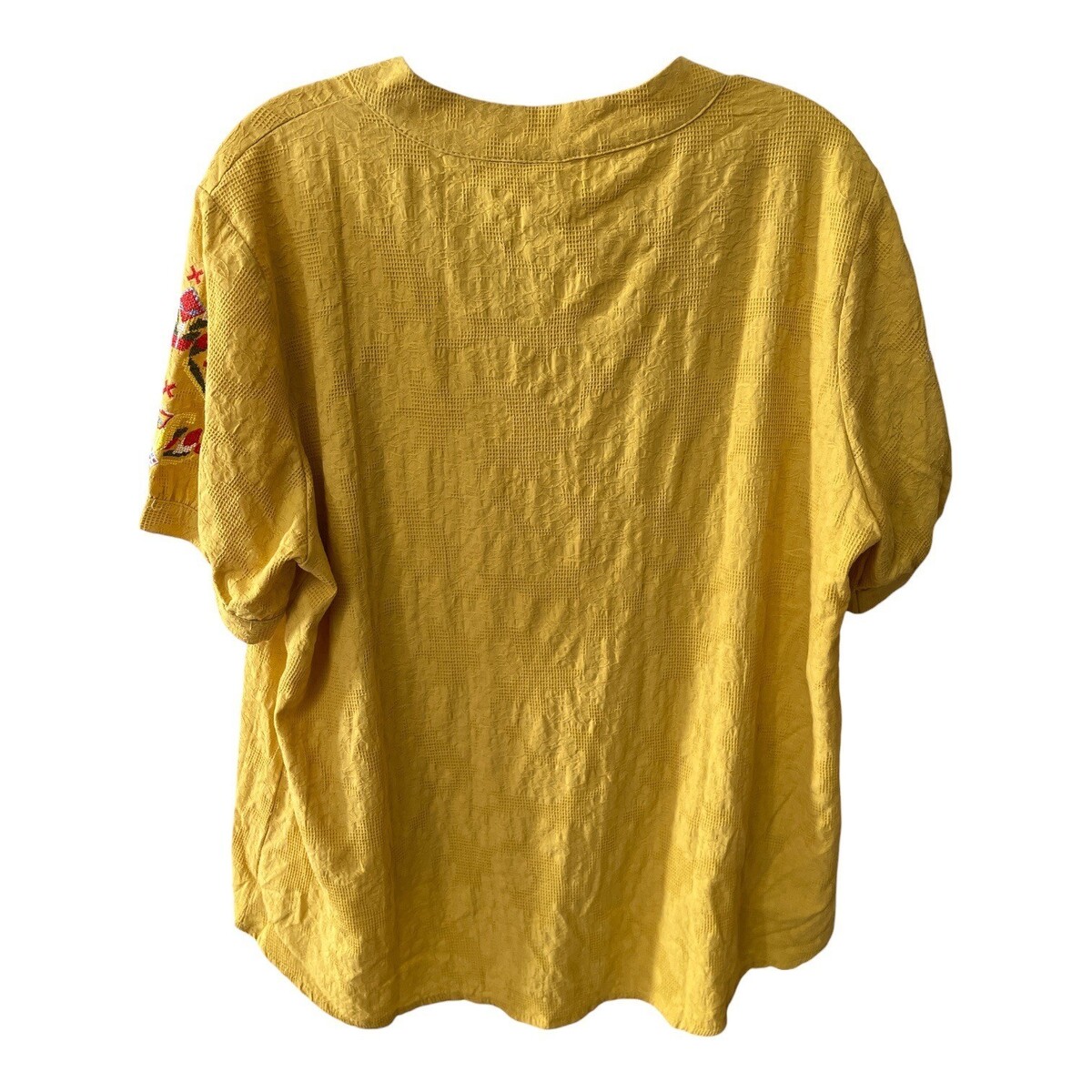 A and X Mustard Yellow Embroidered Sleeve Boho Top Textured Cotton Blend 3XL
