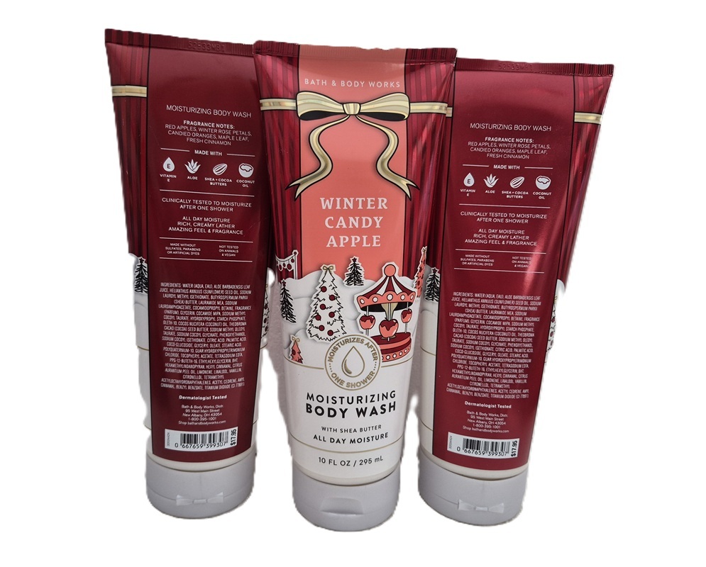 Lot of 3 Bath Body Works Winter Candy Apple Moisturizing Body Wash 10 fl oz each - New