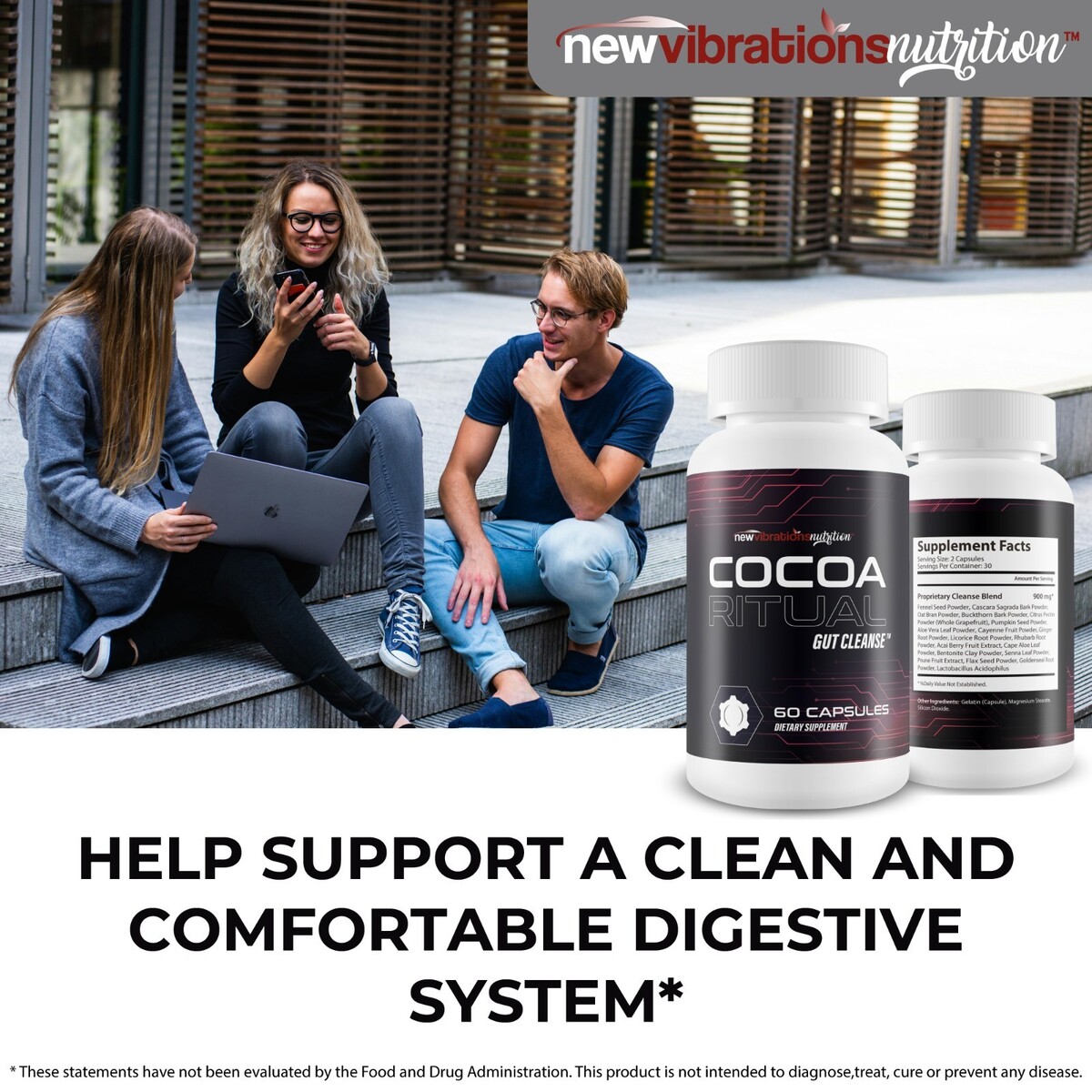 Whole Body Probiotic Herbal Cleanse Support - Cocoa Ritual Gut Cleanse is a powerful digestive supplement designed for full-spectrum gut and digestive health. A healthy gut plays a critical role in nutrient absorption, immune function, energy levels, and overall wellness. This herbal colon cleanse is designed to be taken with cocoa and is perfect for women and men alike. Whether you're seeking daily cleanse pills, gut cleansing pills, natural colon detox cleanse pills, or deep colon cleanse pills, our best colon cleanse for men women supports smooth digestion, a healthy gut microbiome, and overall gut comfort, helping refreshed and naturally balanced every day.