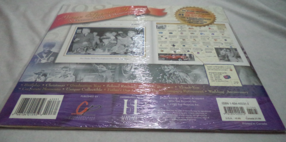 Description: This yearbook is a collectible item originating from Canada. This sealed item serves as a nostalgic keepsake for commemorating anniversaries or birthdays, offering a glimpse into the past with its vintage design and historical significance. Perfect as a thoughtful gift, this unique item captures a moment in time and serves as a cherished memento for any occasion.