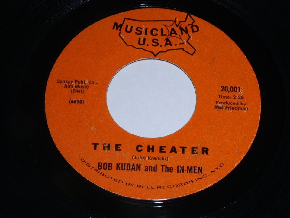 This is the original, vintage 45 rpm record by Bob Kuban And The In-Men entitled, "The Cheater". Flipside: "Try Me Baby". Record label Musicland U.S.A. 20,001.