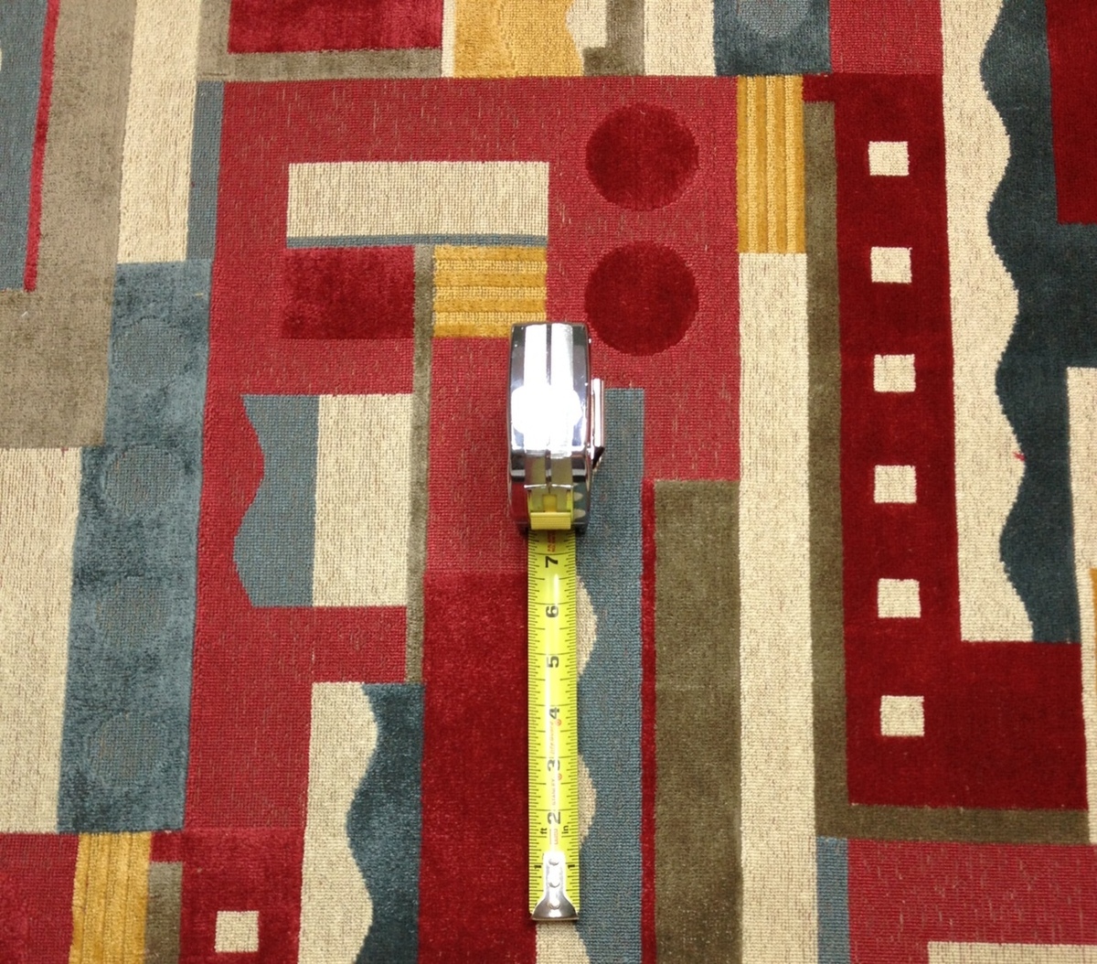 STUNNING LUXURY "ELLINGTON" - RED ABSTRACT GEOMETRIC MODERN TEXTURED LINEN VELVET FABRIC