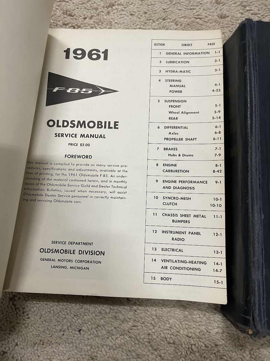 1961 GM factory Oldsmobile F-85 MODELS Service Manual Motors Manual