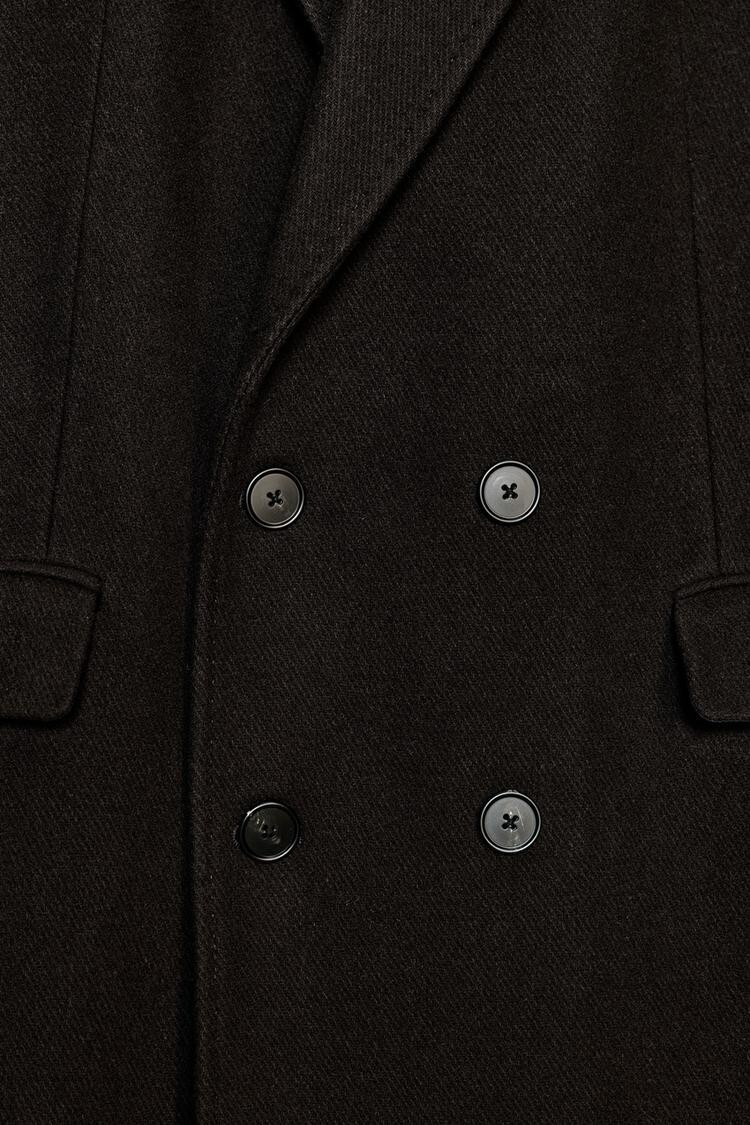 Oversized coat made of wool yarn. Notched lapel collar and long sleeves. Front flap pockets. Interior lining. Front double-breasted button closure.