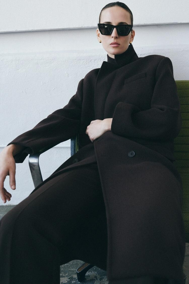 $229 ZARA OVERSIZED DOUBLE-BREASTED BROWN WOOL COAT ZW COLLECTION - S