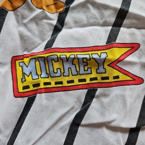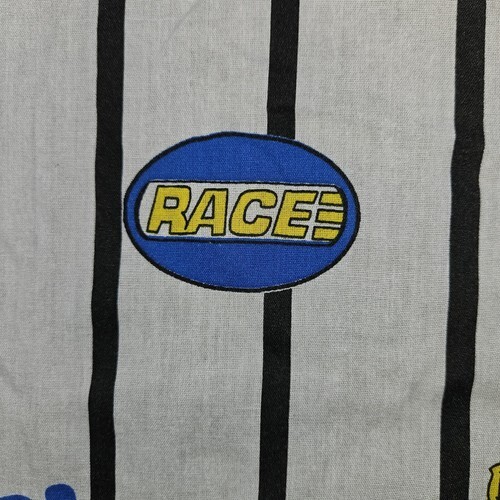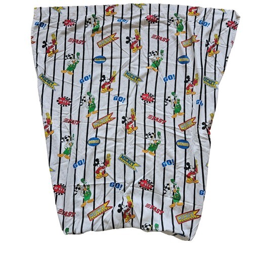 Vintage Disney Dundee Mickey Mouse Crib Sheet Striped Car Racing Half Fitted Half Flat USA