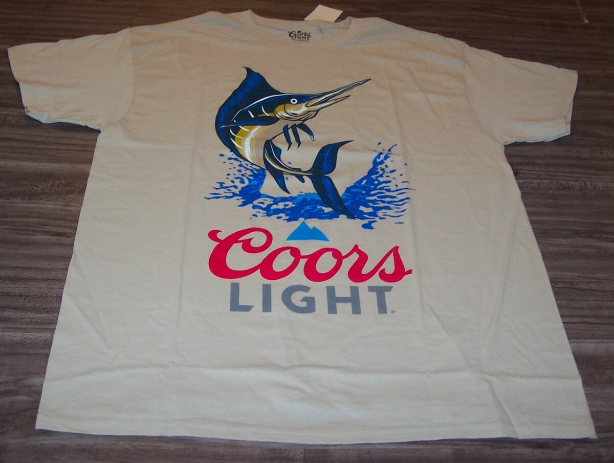 This is a VINTAGE STYLE COORS LIGHT BEER DEEP SEA FISHING Swordfish T-shirt. It is a Size LARGE and is NEW with the tag. It is 22 inches from armpit to armpit and 31 inches in length. Combine auctions to save on shipping. D2AD