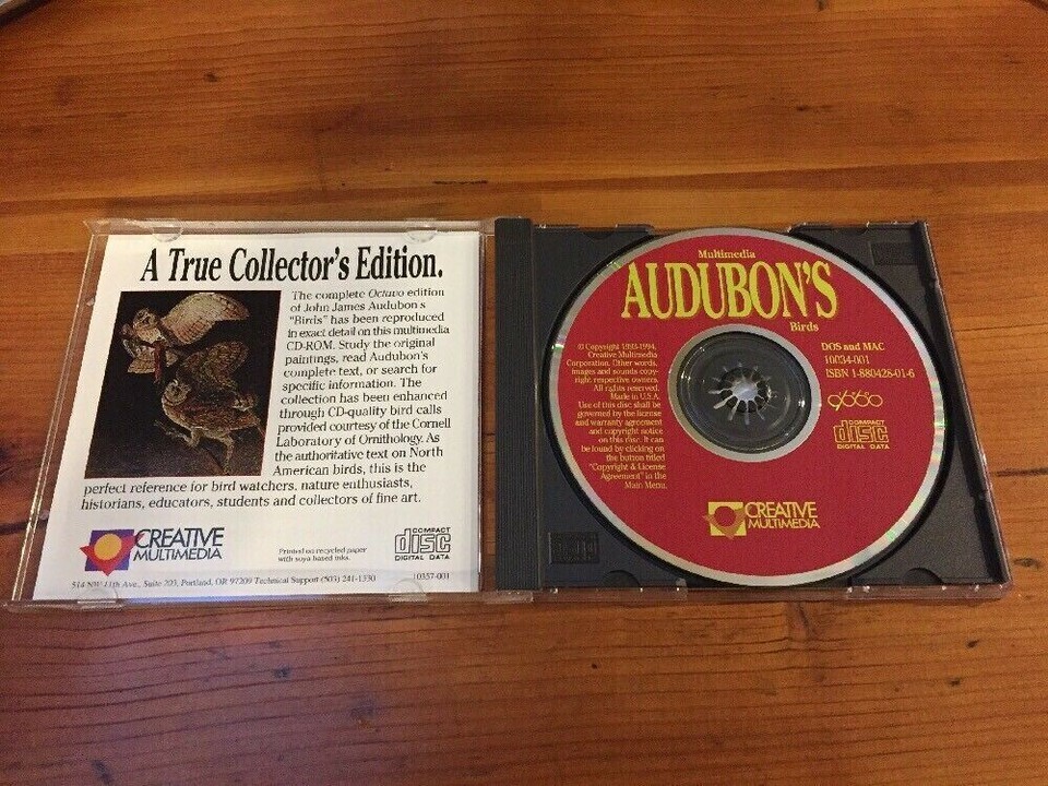 Vintage 1994 Multimedia Audubon Birds Octavo DOS Mac Reference Software Disc CD