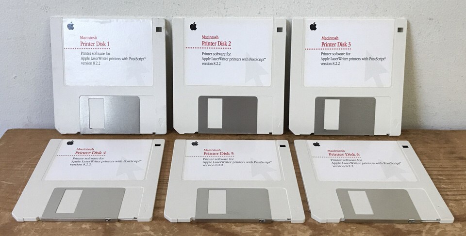 Vintage 1995 Mac Macintosh Apple LaserWriter Printer Floppy Disks Software 8.2.2