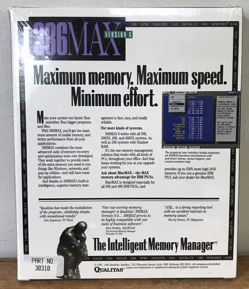 New Sealed Vintage 1992 Qualitas 386Max Version 6 Software Disks w Manual
