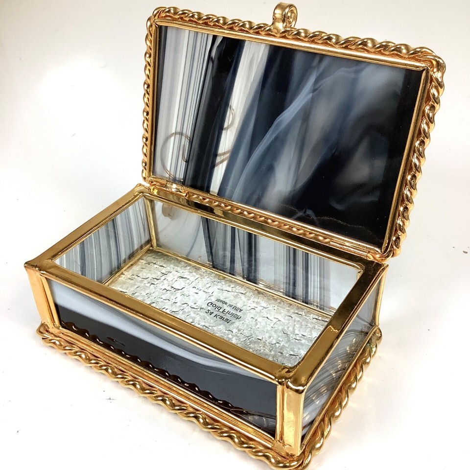 Agate Slag Glass 24k Gold Finish Heavy Trinket Jewelry Floral Box Hinged USA. Very good condition. Measures approximately 5 inches wide by 3 inches deep by 2 inches high. Please see all photos.