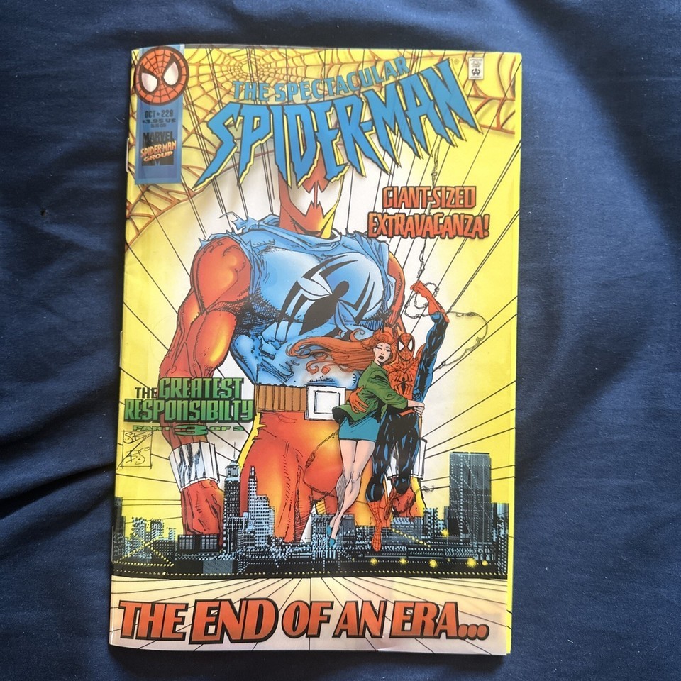 This is an exceptional copy of Spectacular Spider-Man #229, featuring Peter Quits Spiderman. The comic book is in monthly publication frequency and is a single issue format. It has a higher grade acetate cover and is a vintage piece from 1995. The comic book is in English language and is part of the US Comics tradition. The comic book features the superhero team Spider-Man and is a must-have for any fan of the Marvel (MCU) and Spider-Man universes. The comic book is published by Marvel Comics and is intended for a general audience. It is a collectible item and is categorized under Comic Books Memorabilia, Comics, and Comics Graphic Novels.