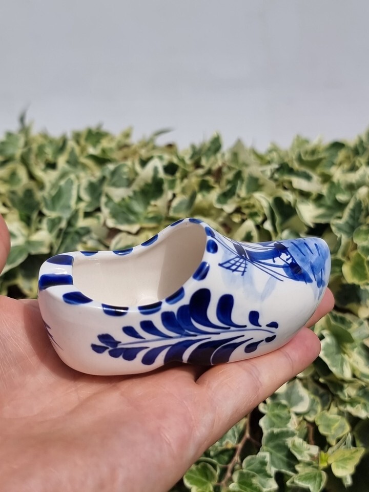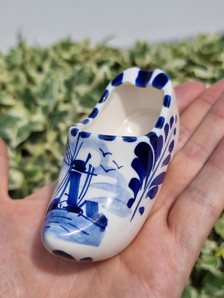 Vintage Porcelain Delft Holland Dutch Windmill Shoe Clog Ashtray, Hand Painted
