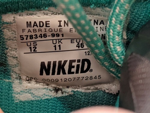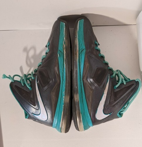 Up for sale is a heavily worn pair of Nike Lebron X 10 ID Diamond Collection Sea Blue Gray Volt 578346-991 US 12.