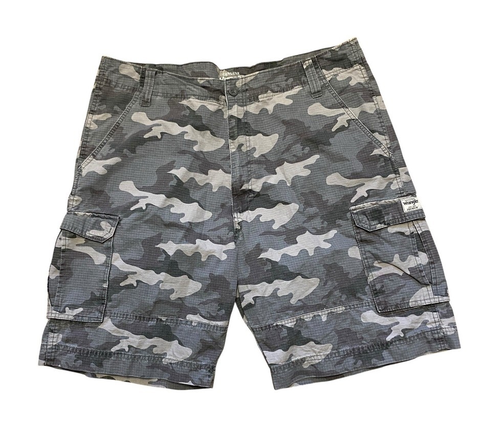Genuine Wrangler Camo Cargo Shorts Size 40 Camouflage Relaxed Fit Hike Travel
