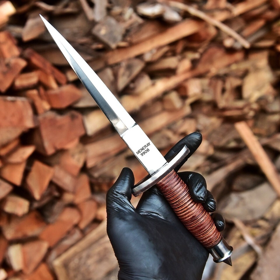 V-42 FSSF Stiletto Dagger Knife ? WWII Replica | Carbon Steel Blade + Leather Sheath
