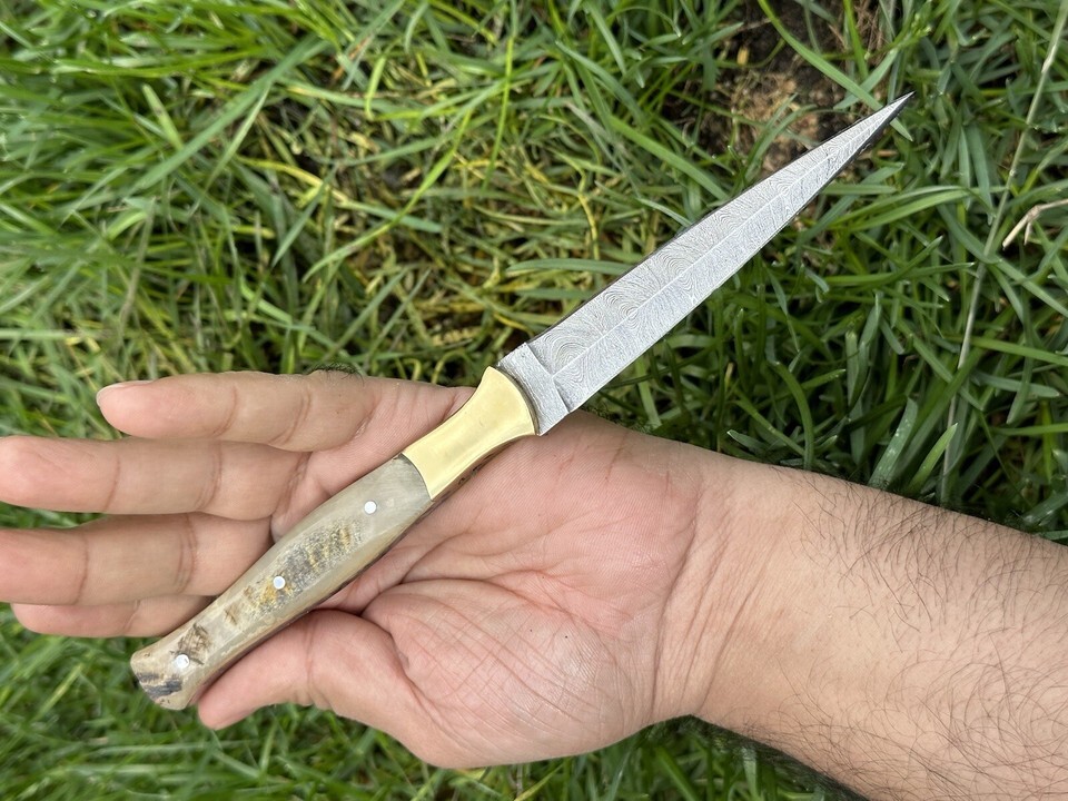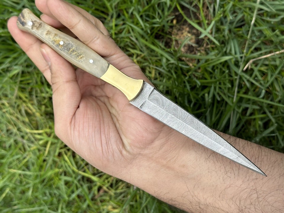 Custom Handmade Damascus Steel Fixed Blade Hunting dagger double edged Knife