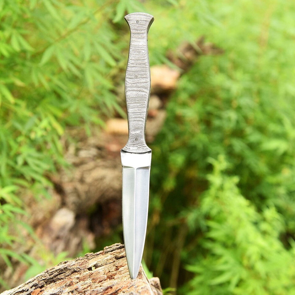 D2 BLADE DAMASCUS STEEL HANDLE Hunting Dagger Survival Boot Combat FISHING KNIFE