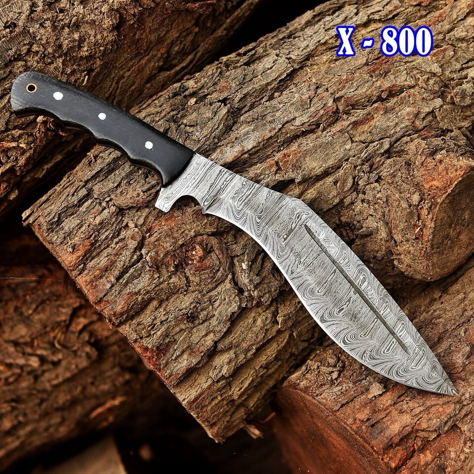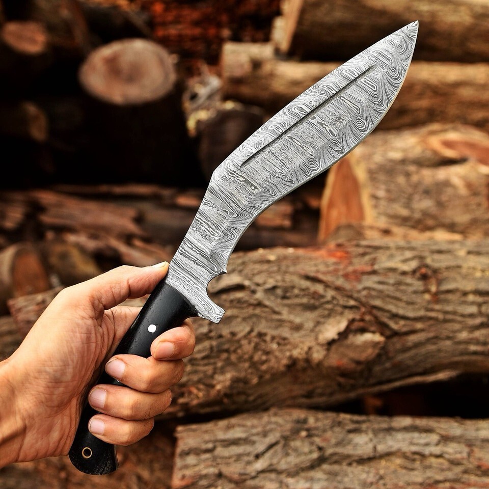16" Custom Damascus Steel Fixed Blade Bowie Hunting Jungle Knife GURKHA KUKRI
