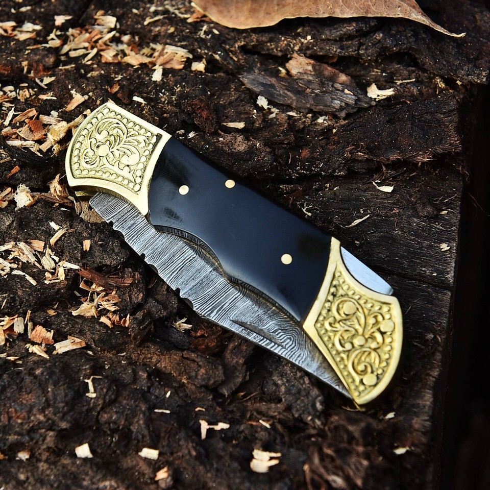 · Blade of this knife has a nice file work and is made of 512 layers of stainless steel and high carbon steel with hardness 55-60 HRC. This robust knife is lab tested under intense conditions, the balance and shape of this knife ensures perfect grip.