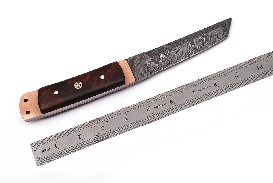 10” DAMASCUS STEEL KNIFE HUNTING SURVIVAL FIXED TANTO BLADE BUSHCRAFT CAMPING